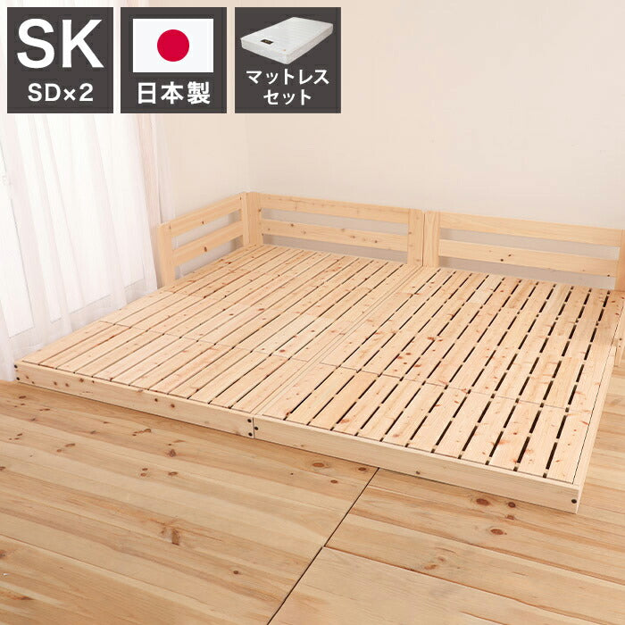 国産のヒノキ材を贅沢に使用したローベッド。金具でピッタリ連結できるので家族で川の字で寝る事ができます