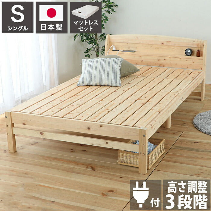 便利な棚コンセント付きのヒノキベッド。佐川急便で配送可能。2口コンセント付き。1500W