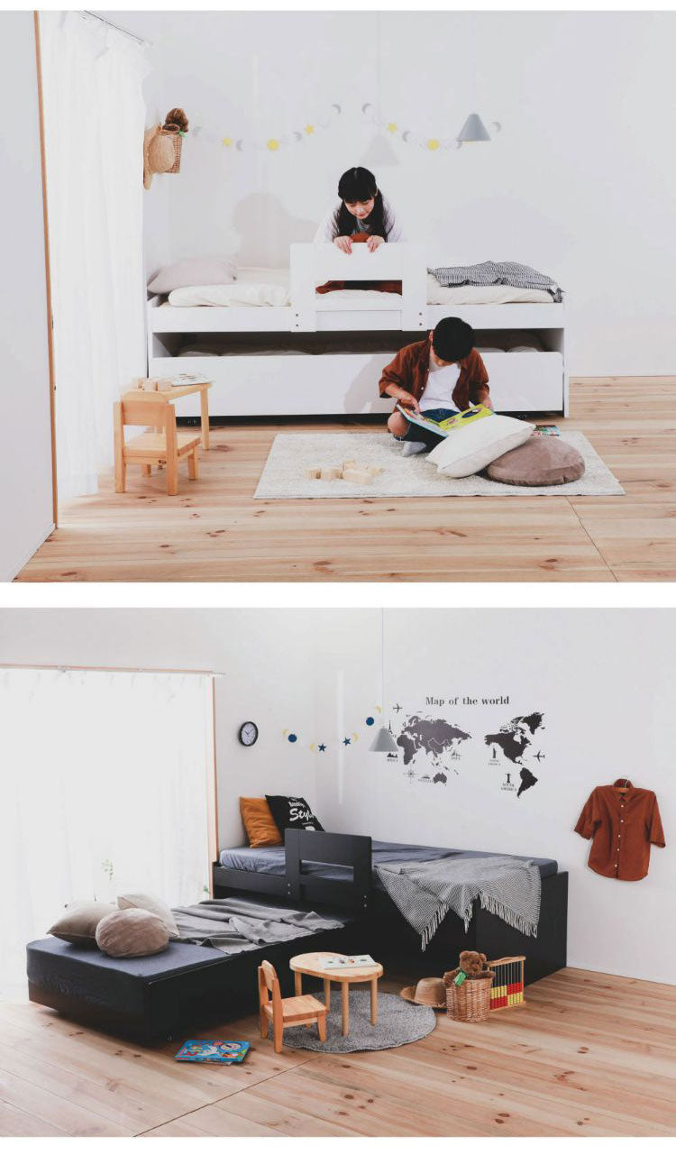 兄弟で親子で使えるペアベッド。お部屋を広く使う事ができます。