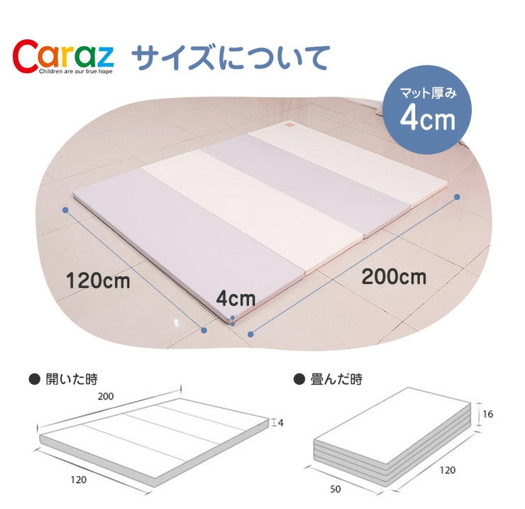 プレイマット 120×200×4cm 4段 ベビーマット ノンホルム 防炎 防音 厚手 防水 すべり止め キッズ 折り畳み caraz 洗える(代引不可)