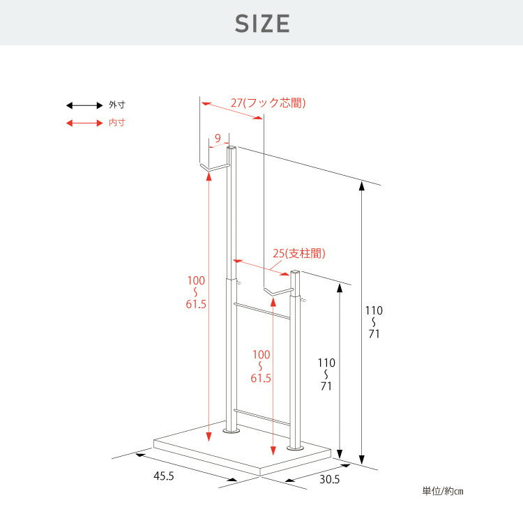 約幅45.5×奥行30.5×高さ71~110cm