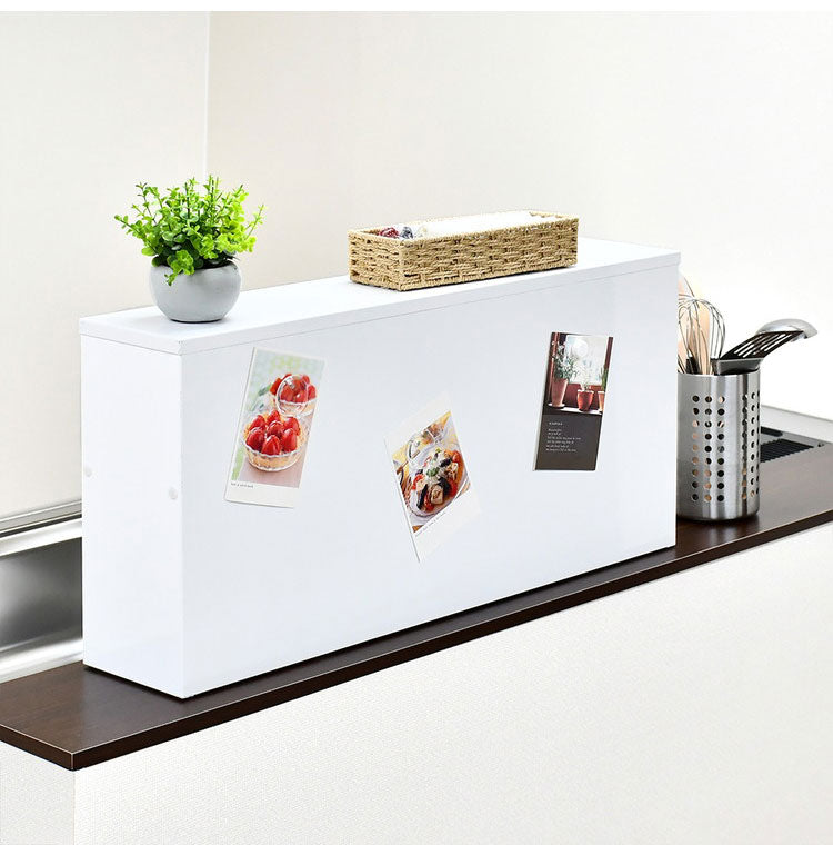 調味料やキッチンツールの収納だけでなく、背面が付いているため手元隠しにもなるよう設計されています。