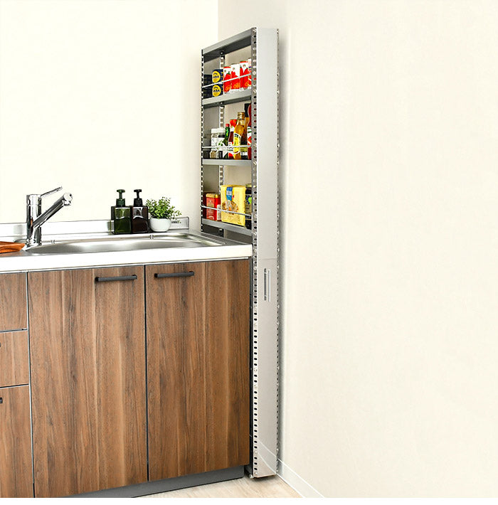 日本製 燕三条 ステンレスすき間収納 幅10cm ハイタイプ 高さ159cm 棚板調節 隙間収納 すき間収納 キッチン収納 キッチンワゴン トールワゴン スリム(代引不可)
