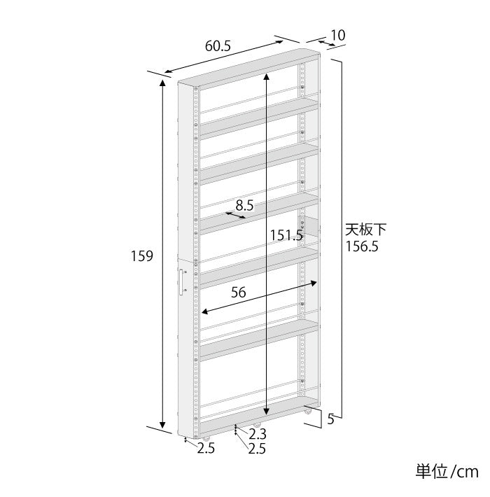 【本体】約幅10×奥行60.5×高さ159cm(取手含まず)