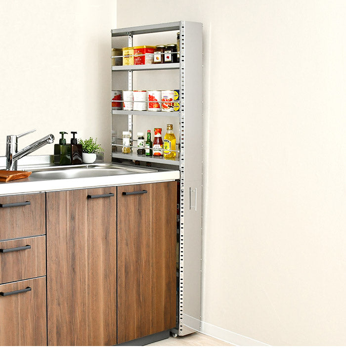 日本製 燕三条 ステンレスすき間収納 幅15cm ハイタイプ 高さ159cm 棚板調節 隙間収納 すき間収納 キッチン収納 キッチンワゴン トールワゴン スリム(代引不可)