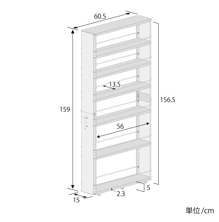 【本体】約幅15×奥行60.5×高さ159cm(取手含まず)