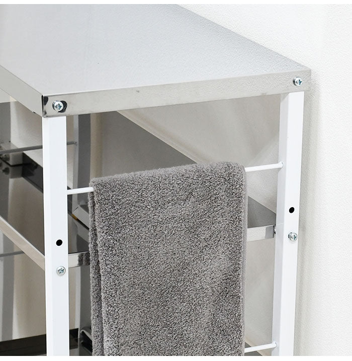 作業台を広げたい時に天板をサッと横にスライドさせるだけで◎横幅は約52~78cmまで伸縮します。