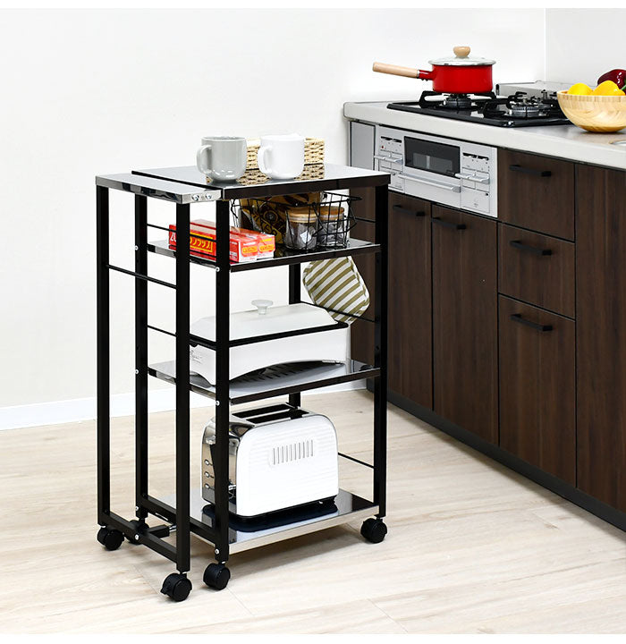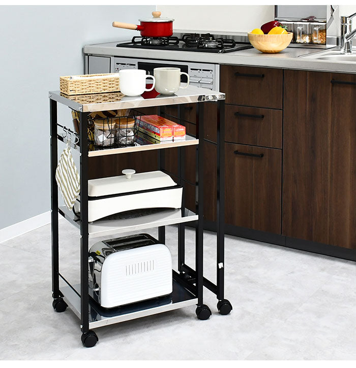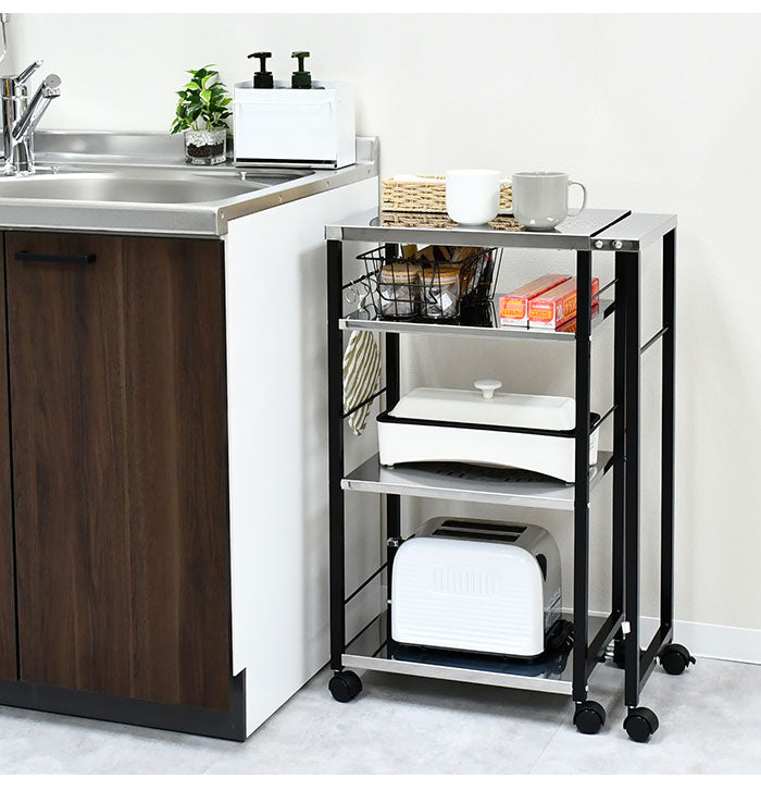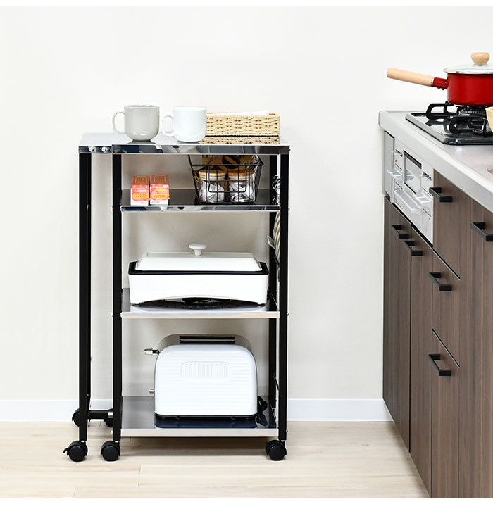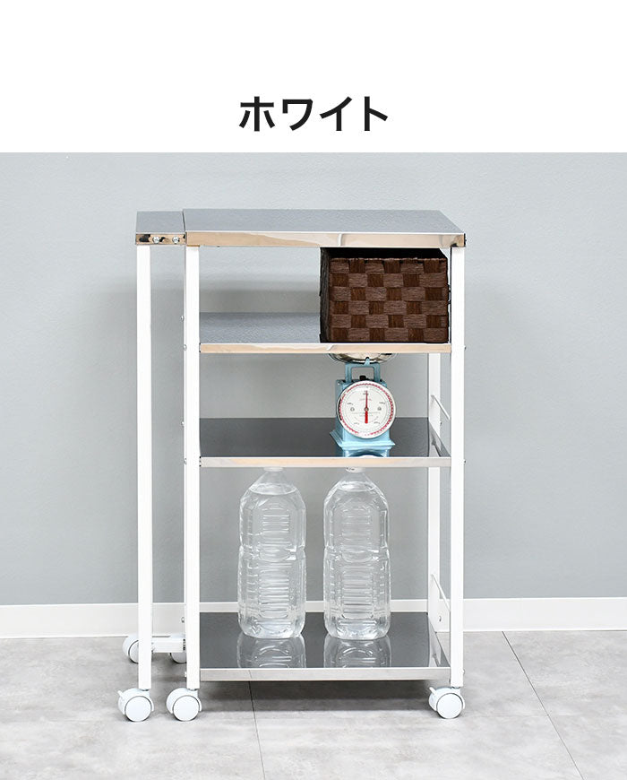 日本製 しまえる作業台付きキッチン家電ワゴン 幅52~78cm 天板伸縮式 キッチンワゴン 伸長式 ステンレス 作業台 レンジ台 トースターラック コンパクト スリム(代引不可)