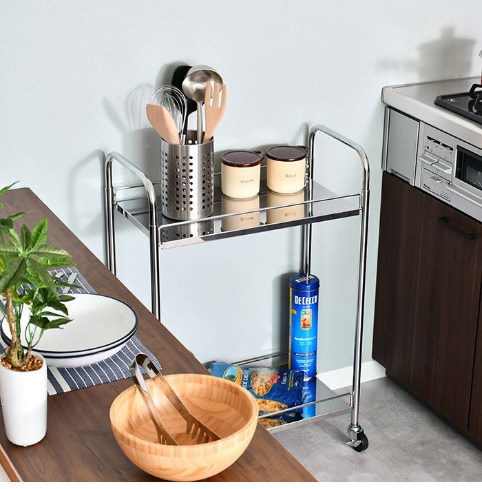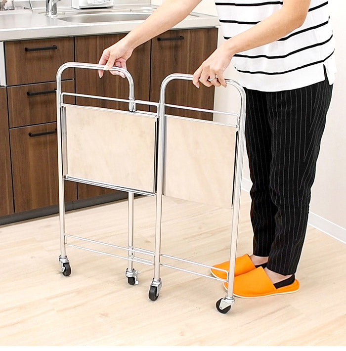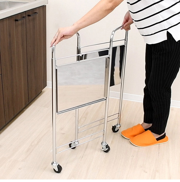 日本製 たためるステンレス棚ワゴン 32×60 キッチンワゴン キャスター付き キッチンラック キッチン収納 ランドリーワゴン プランタースタンド 取っ手 折りたたみ式 省スペース スリム(代引不可)