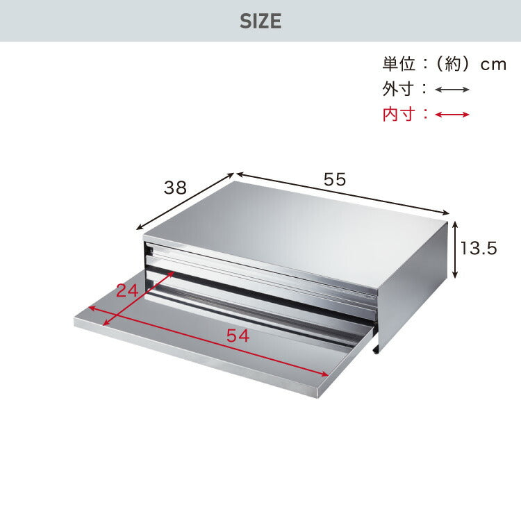 日本製 燕三条 キッチン家電下スライドテーブル 引出し付き 幅55 大型レンジ対応 頑丈 ステンレス製 耐荷重30kg 引き出し 収納 レンジ下 完成品(代引不可)