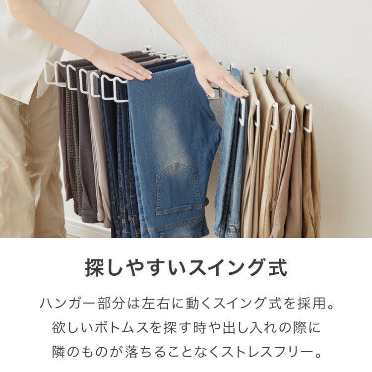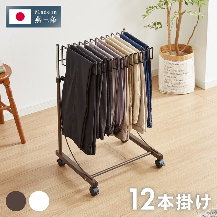 高さ伸縮スラックスハンガー(スイング式)12本掛けは、日本製の高品質を誇るズボン収納ラックです。