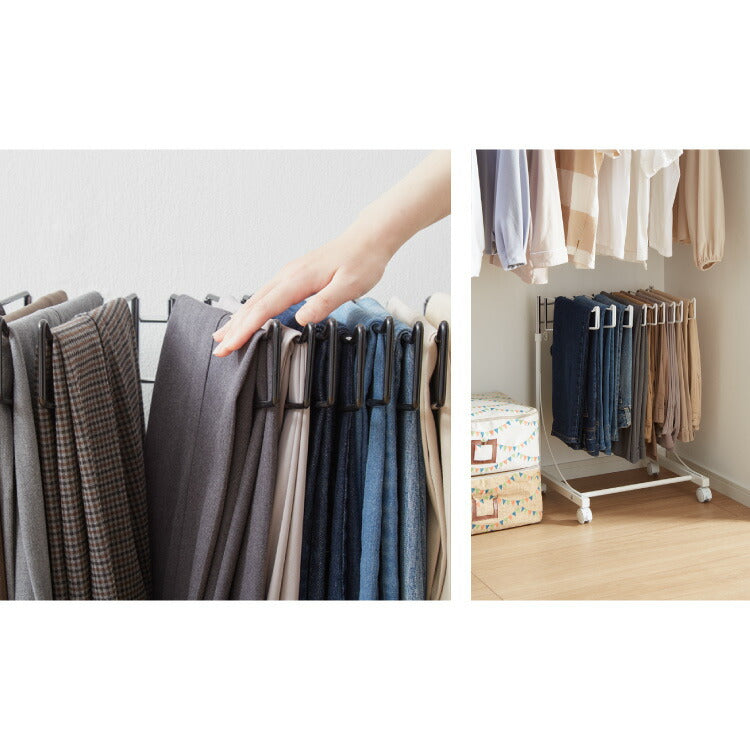 日本製 高さ伸縮スラックスハンガー 12本掛け スイング式 キャスター付き スラックス収納 ハンガーラック スリム 押入れ 押し入れ 収納 クローゼット パンツ ズボン ハンガー(代引不可)