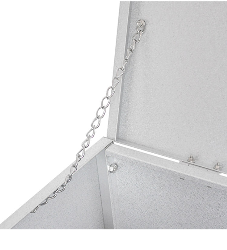 フタの開き具合を調整できるチェーン、設置場所に合わせて調整できるアジャスター付き。