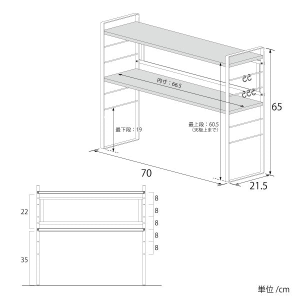 コンロ幅60cm用。コンロ奥の隙間を収納スペースとして有効活用できるラック棚。