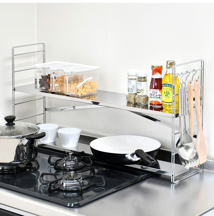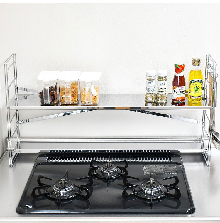 日本製 燕三条 排気口カバー付き コンロ奥多機能ラック 幅80cm 2段 コンロ幅75用 コンロ奥ラック ステンレス棚 調味料ラック スパイスラック キッチンラック キッチン収納(代引不可)