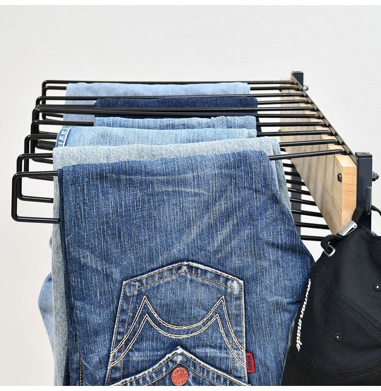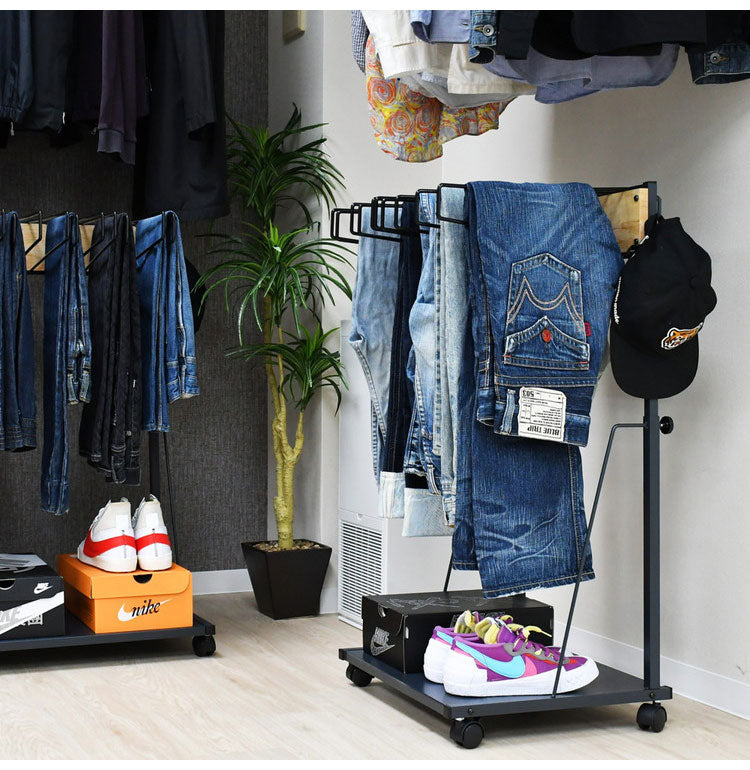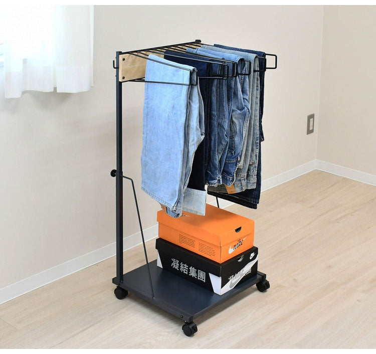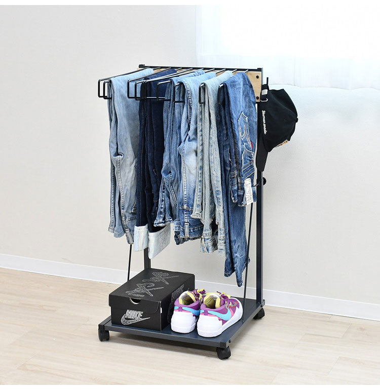 rootis 日本製 ワイドパンツ対応 ジーンズハンガー 10本掛け 高さ調節 棚付き スイング式 滑らないハンガー THE JEANS HANGER ヴィンテージ 古着 スラックスハンガー(代引不可)