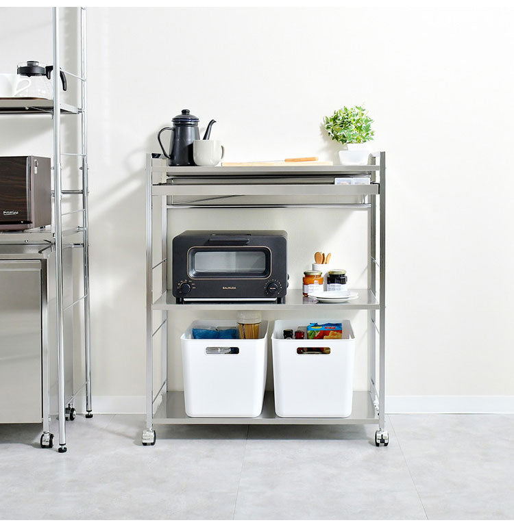キッチンでの作業効率を向上させてくれるステンレスワゴン。