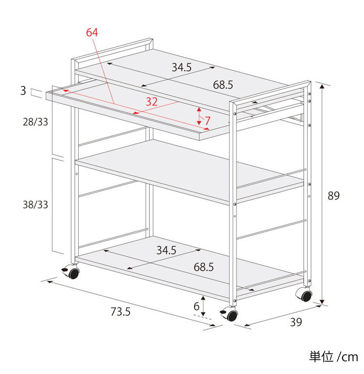 【本体】 約幅73.5×奥行39×高さ89cm(天板までの高さ85cm)