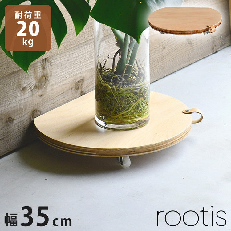 rootis 日本製 耐荷重20kg プランタースタンド 新潟県南魚沼産木材使用 プランター台 キャスター付き セミラウンド 幅35cm ホームキャリー 平台車 台車 フラワースタンド 円形 丸型 回転 トレー(代引不可)