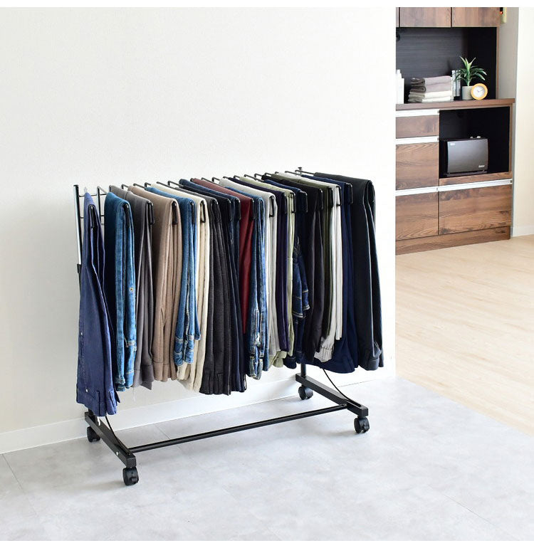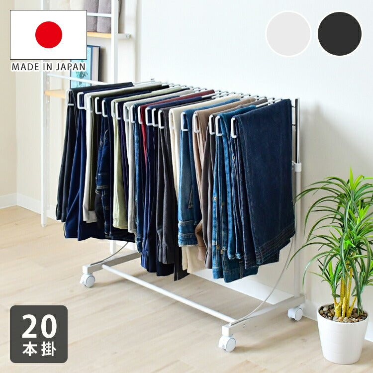【ワイドパンツ対応】日本製 高さ伸縮ワイドスラックスハンガー 20本掛け スイング式 キャスター付き スラックス収納 ハンガーラック スリム 押入れ 押し入れ 収納 クローゼット ハンガー(代引不可)