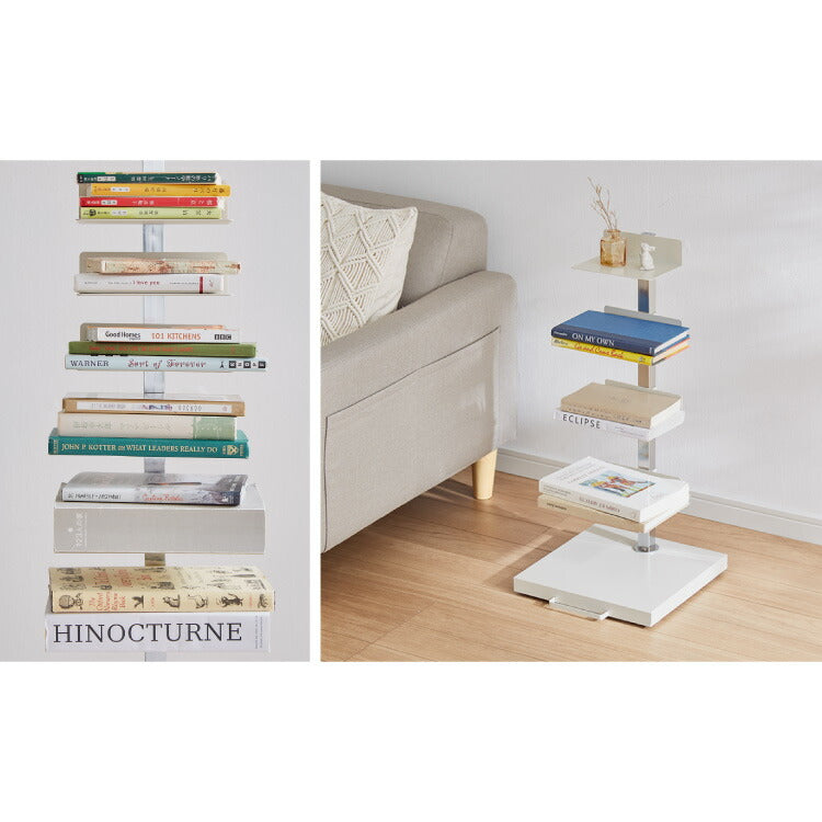 日本製 ブックタワー 5段 アイボリー おしゃれ 隠しキャスター付き 棚板高さ調節 積ん読 本棚 シェルフ タワー マガジンラック コミック 文庫本 積読 ディスプレイ サイドテーブル(代引不可)
