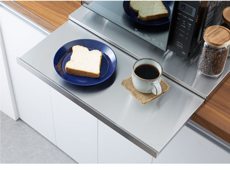 用途:レンジ、トースター、炊飯器などのキッチン家電の下に置くだけ。スライドトー、スライドテーブルとして、キッチンラックのスペース拡大に。