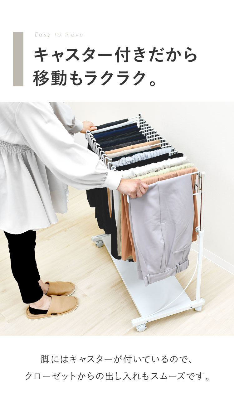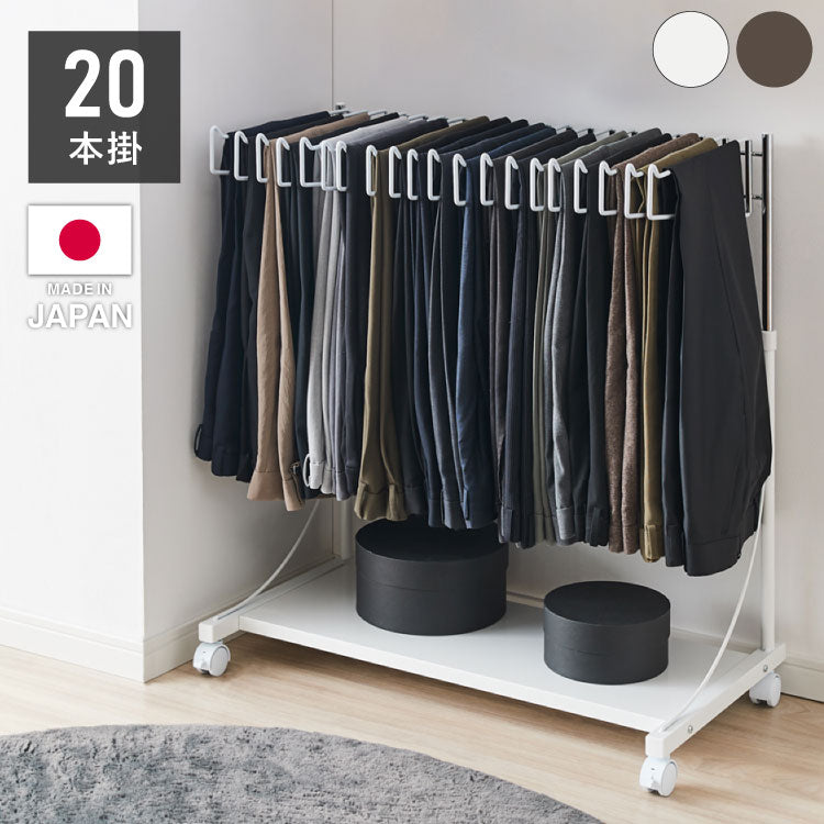 日本製 棚付き高さ伸縮 スラックスハンガー 20本掛け 大容量 頑丈 キャスター付き スイング式 ボトムスハンガー パンツハンガー ズボンハンガー 衣類収納 クローゼット収納 押し入れ収納 押入れ収納(代引不可)