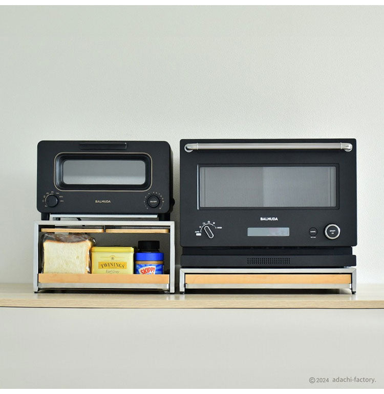 rootis 日本製 オーブンレンジラック 完成品 耐荷重20kg 幅45cm スライドテーブル 新潟県南魚沼産木材使用 スライドトレー 家電下トレー 家電下ラック 作業台 足立製作所 bokula(代引不可)