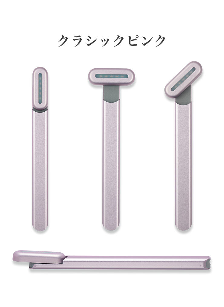 マイクロ振動によるマッサージ機能を兼ね備えた赤色LED搭載美顔器であり、