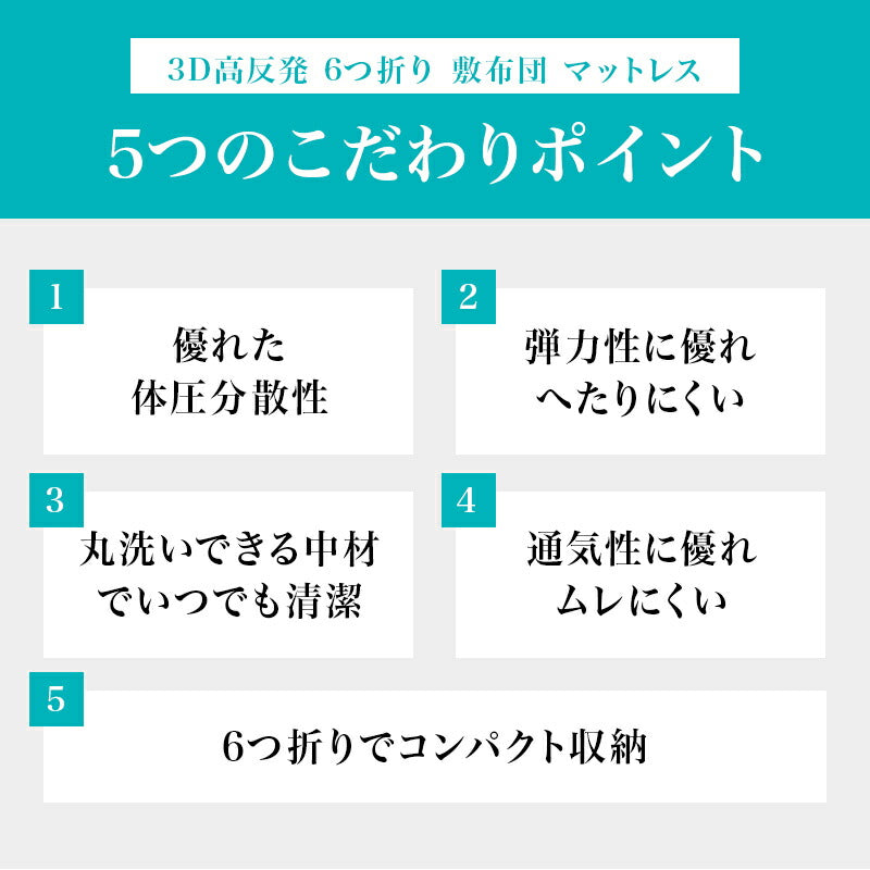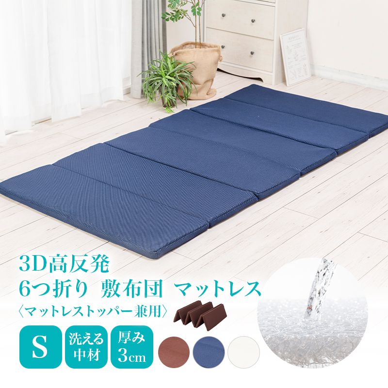 3D高反発マットレス シングル 厚み3cm 6つ折り 敷き布団 マットレス トッパー 抗菌防臭 洗える 丸洗い ウォッシャブル マットレスカバー 北欧 おしゃれ 寝具 シンプル 無地 オールシーズン(代引不可)