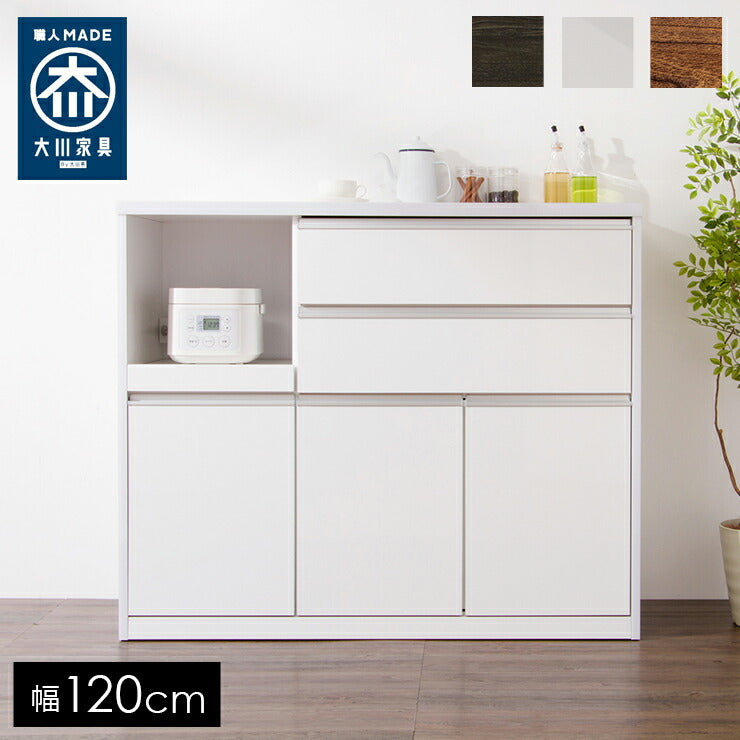 キッチンカウンター 幅120cm 【国産 大川家具 開梱設置無料 完成品】 レンジ台 レンジラック 食器棚 キッチンワゴン (代引不可)