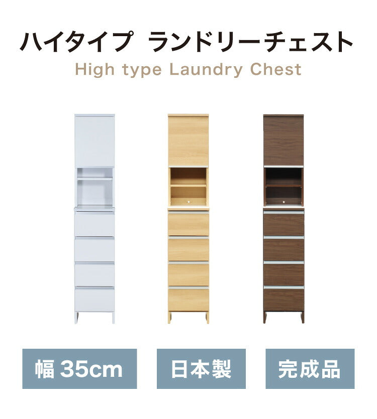ランドリーチェスト ハイタイプ 幅35cm 高さ180cm 奥行40cm 【国産 大川家具 完成品】 ランドリー収納 ランドリーボックス サニタリーラック サニタリーチェスト(代引不可)