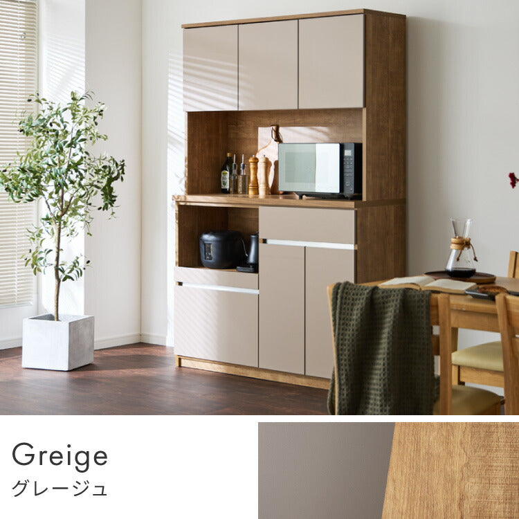 食器棚 キッチンボード 幅120cm 国産 完成品 大川家具 開梱設置無料 モイス加工 防汚加工 鏡面ホワイト セラミック調グレー オーク グレージュ 大容量 キッチン 収納(代引不可)