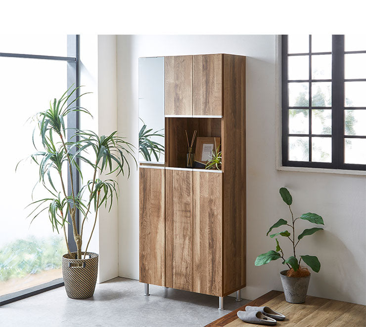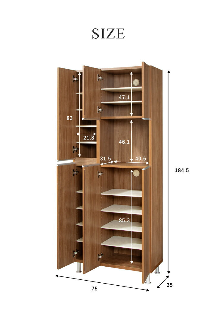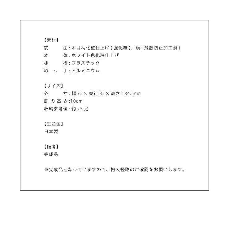 シューズボックス ハイタイプ ミラー付き 【国産 大川家具 完成品】 幅75cm 高さ175cm 奥行35cm 靴箱 シューズラック 玄関 収納 完成品 下駄箱 玄関収納 シューズラック 日本製(代引不可)