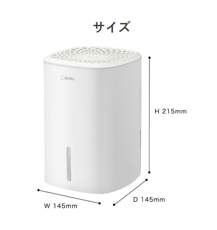 ドリテック コンパクト除湿機 JY-102 小型除湿機 大容量タンク 800ml 4.5畳以下 コンパクト 省スペース 除湿器 ペルチェ式 小型 梅雨対策 湿気対策 玄関 クローゼット 寝室 白 ホワイト ロワン dretec