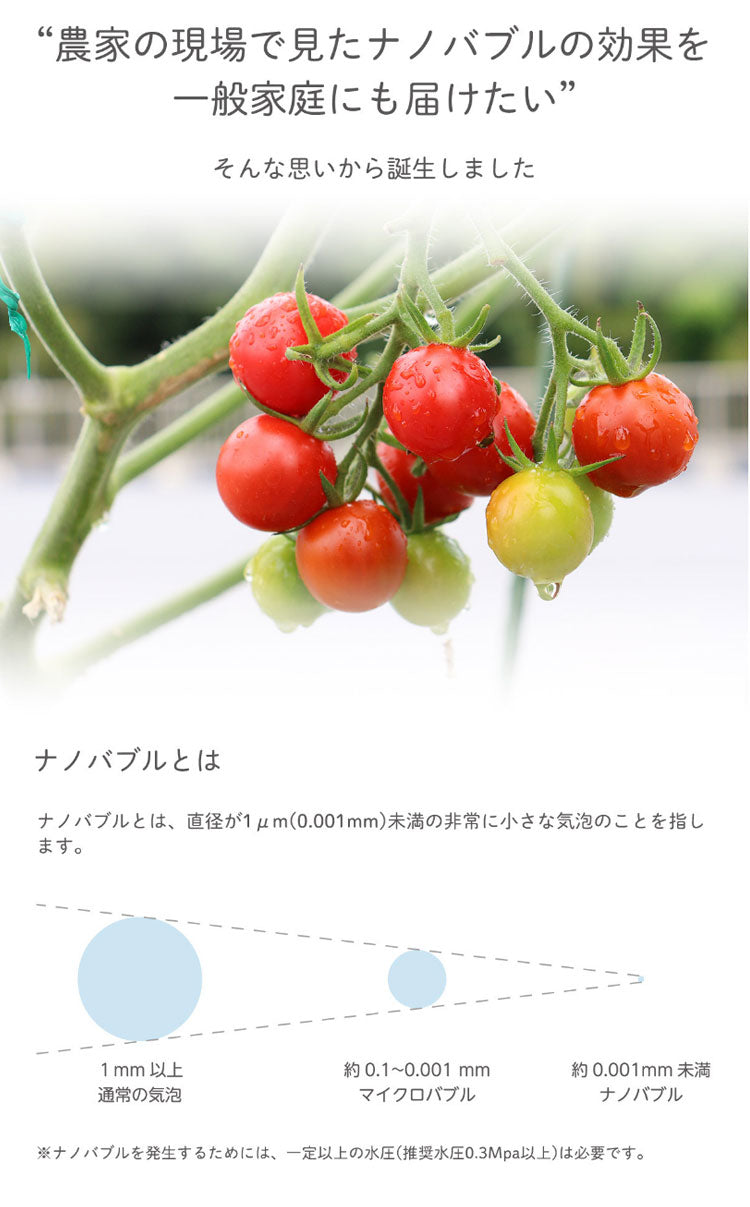 取り付けるだけでいつもの水をナノバブル水に。