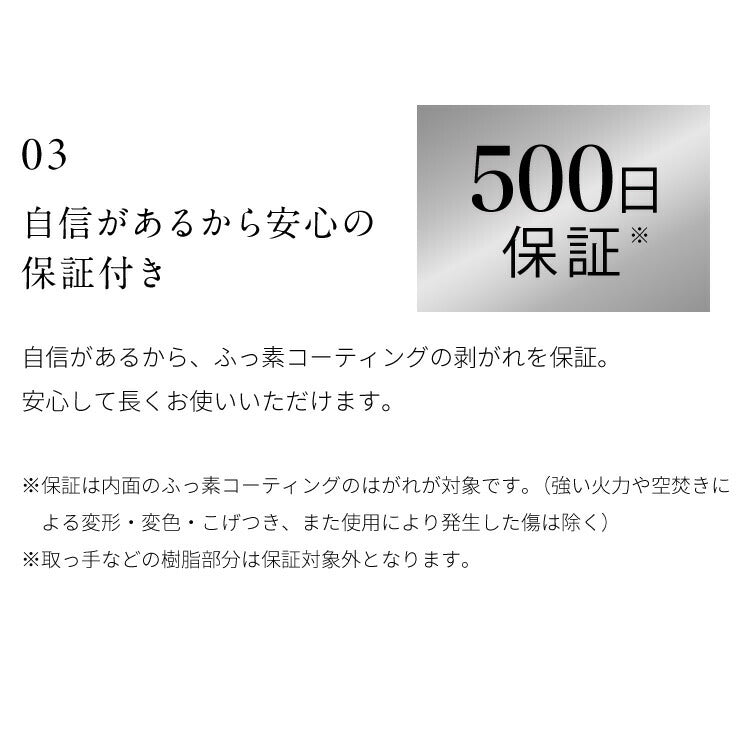 保証:500日(※保証は内面ふっ素樹脂のはがれが対象です)