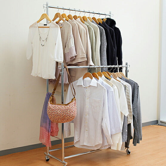 ハンガープロ ダブル Luminous(ルミナス) 幅100.5cm 耐荷重150 2段 スチール 高さ伸縮式 キャスター付 省スペース 頑丈 ハンガーラック パイプハンガー ワードローブ 衣類収納 HPD-100CR