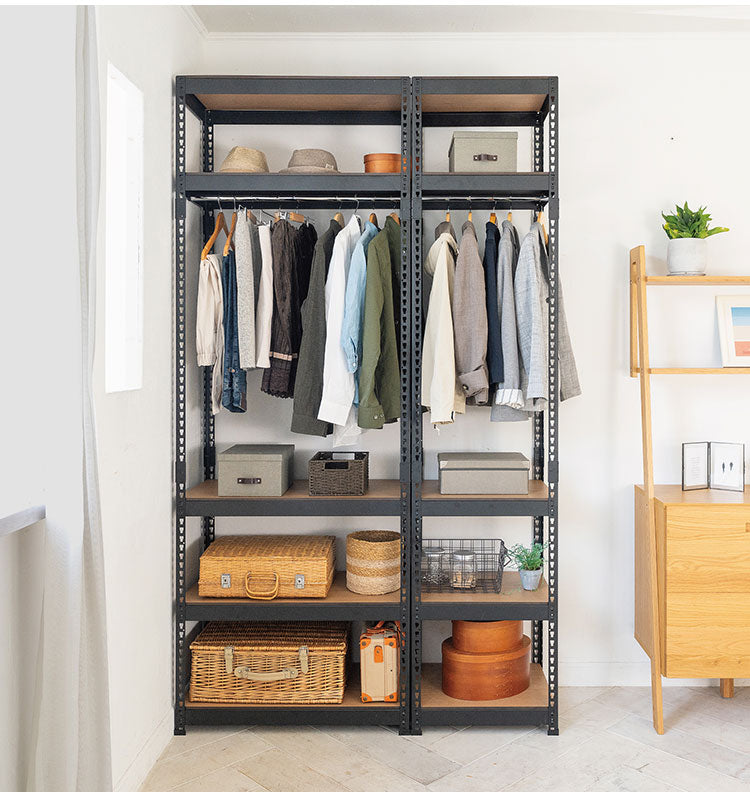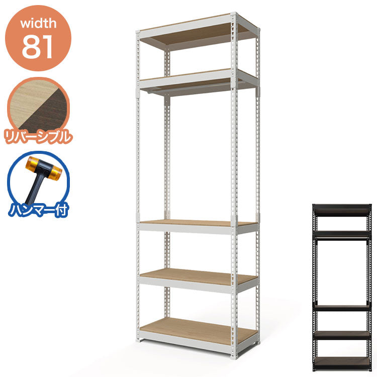 全5段 幅81cm ハンガー付き ドリームウェア メタル&ウッドラック MK-2285HWH MK-2285HBK 総耐荷重約250kg 洋服収納可能 リバーシブル棚板 ボルトレス 転倒防止金具付 組立用ハンマー付(代引不可)