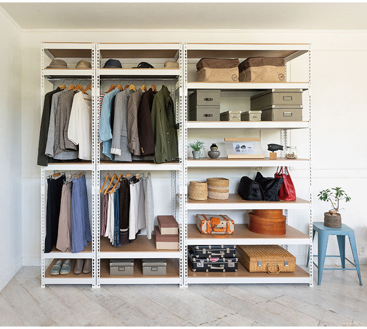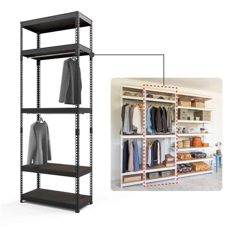 全5段 幅81cm ハンガー2段付き ドリームウェア メタル&ウッドラック MK-2285H2WH MK-2285H2BK ハンガー2本付 洋服収納可能 リバーシブル棚板 ボルトレス 転倒防止金具付 組立用ハンマー付(代引不可)