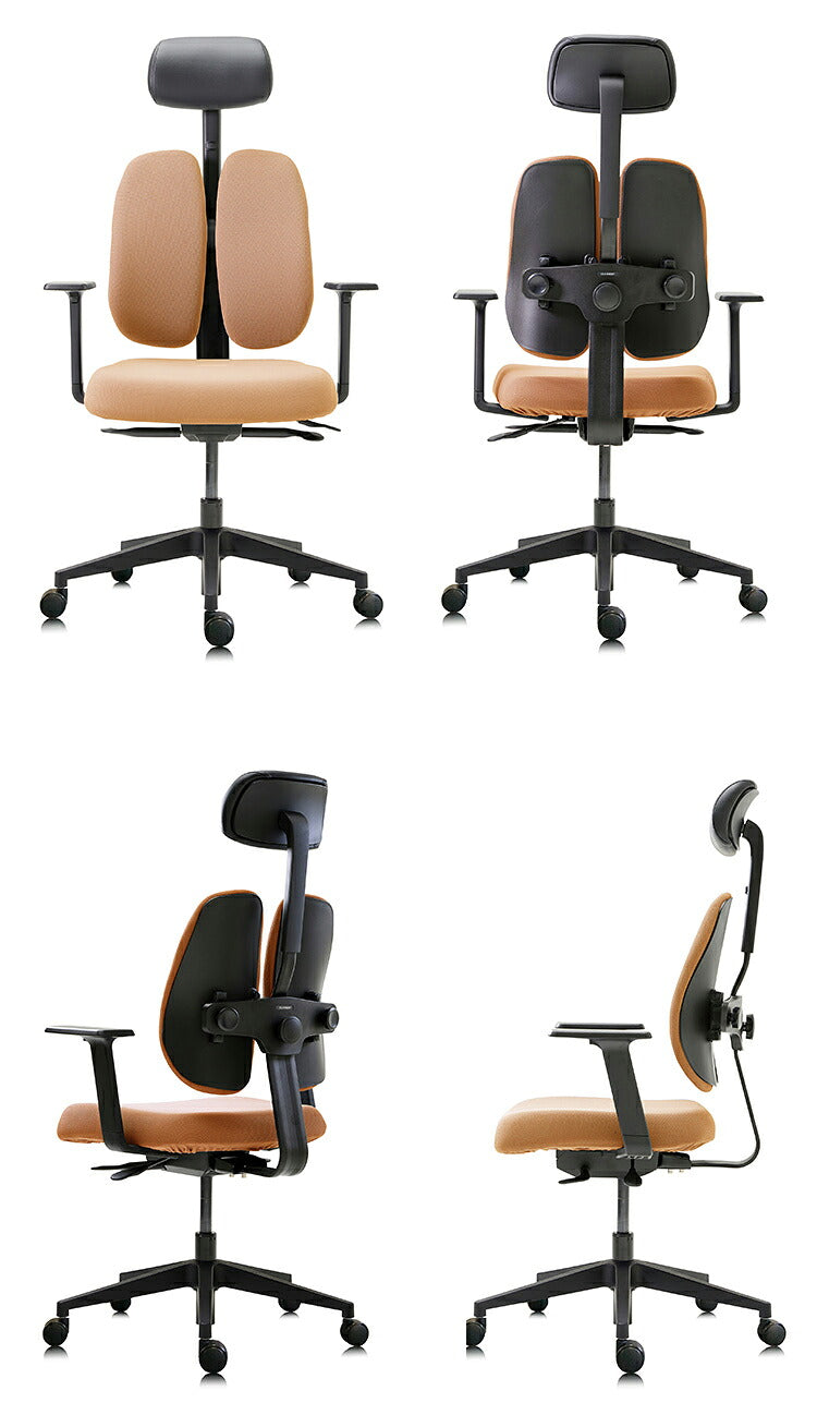 背面のカバーの中にある調整ダイヤを回せば、両方の背もたれを同時に調整可能!