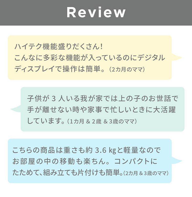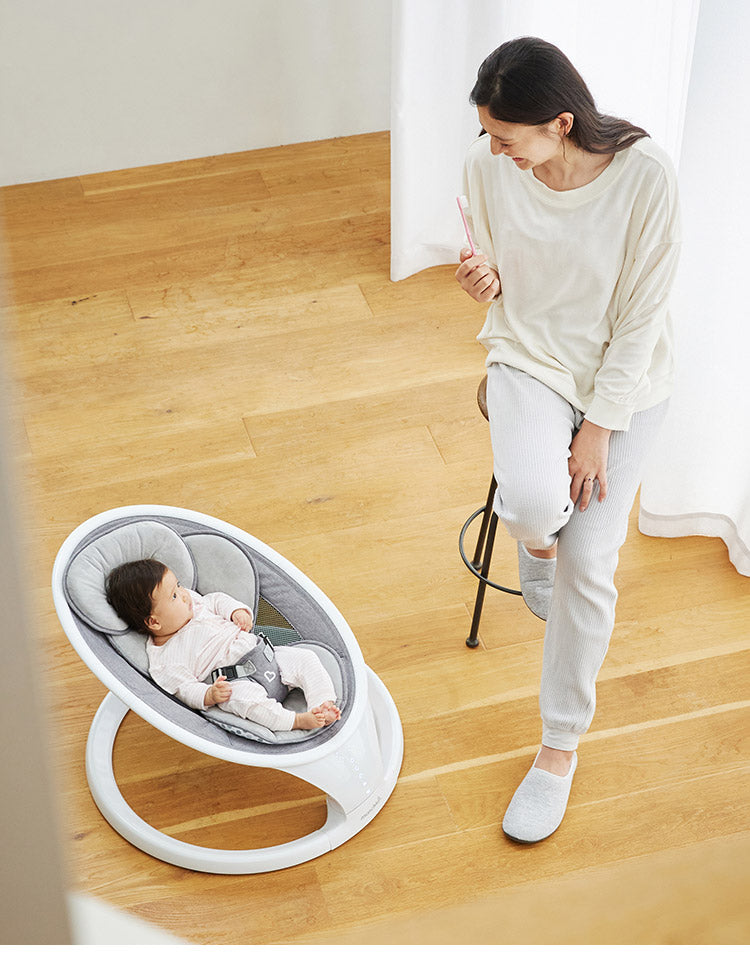 フィットするデザイン、シンプルな使い方 赤ちゃんゆったり あなたにゆとり 電動ベビースウィング