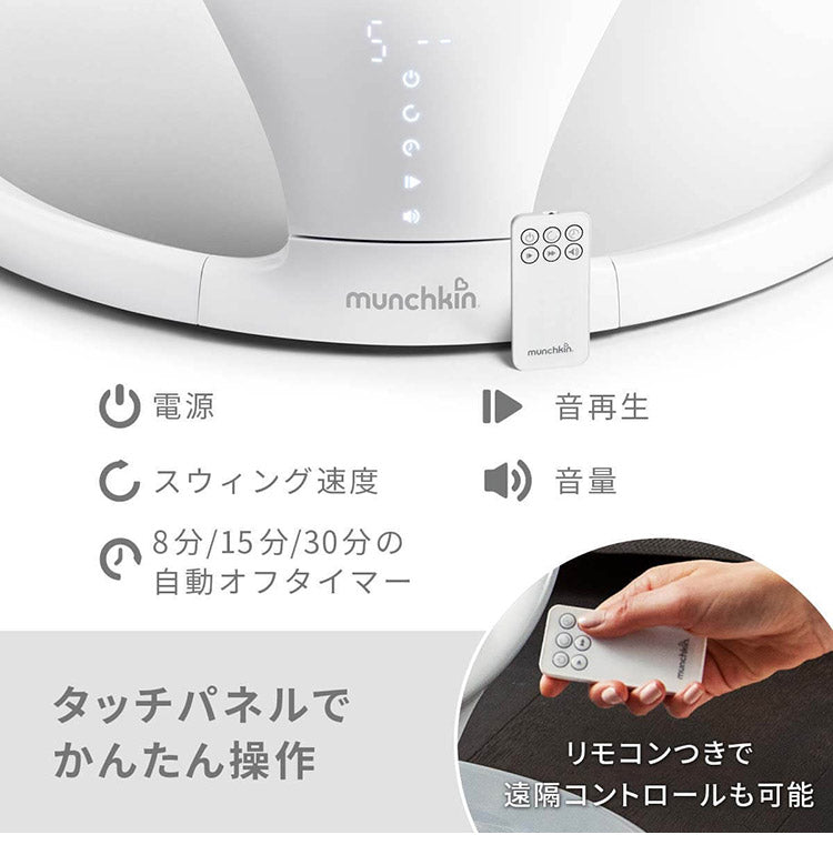 munchkin 電動ベビースウィング ベビースウィング マンチキン 電動 オートスイング ゆりかご 寝かしつけ ベビーチェア 出産祝い シンプル 軽量 おしゃれ ベビー 赤ちゃん 新生児 乳児 bluetooth