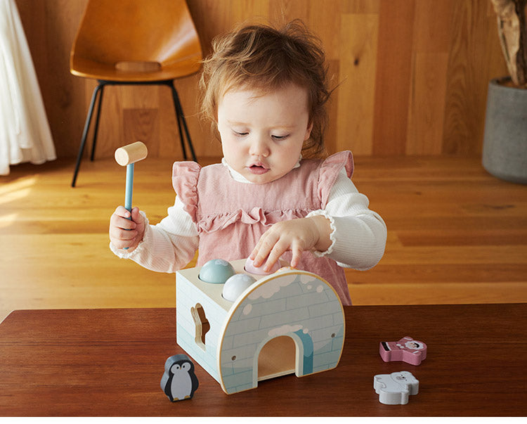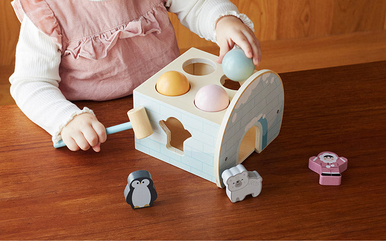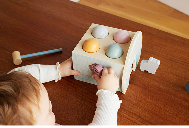ハンマーでボールを叩けば落ちたボールが下からころんと出てくる楽しいしかけ。