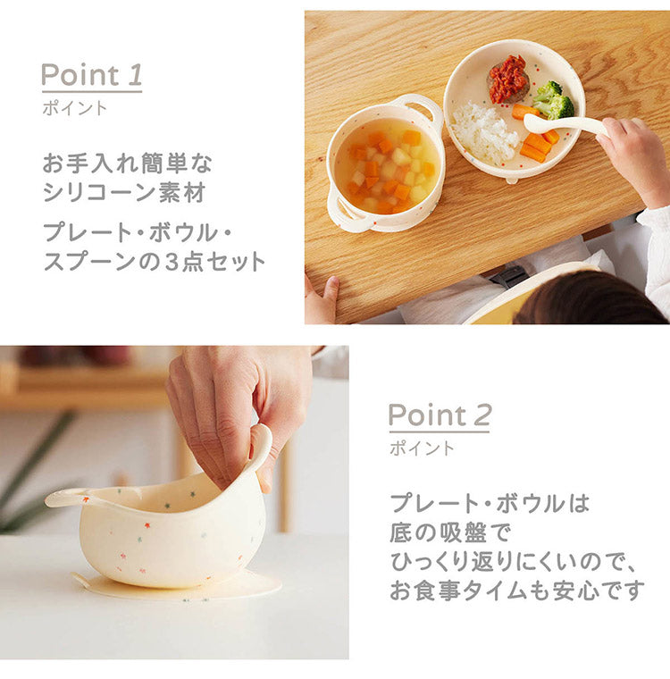 D BY DADWAY シリコーン食器セット お手入れ簡単 シリコーン素材 倒れにくい プレート ボウル スプーン 3点セット かわいい ベビー 食事 出産祝い 星 食器セット シリコン シリコン食器