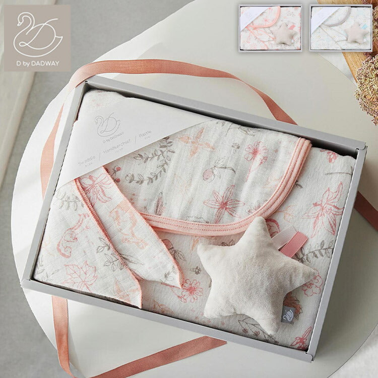 D BY DADWAY ギフトセットM ガーゼおくるみ ガーゼハンカチ スターラトル 3点セット 出産祝い プレゼント 子ども ベビー ベビー用品 ベビーギフトセット おもちゃ おくるみ ハンカチ ガーゼ
