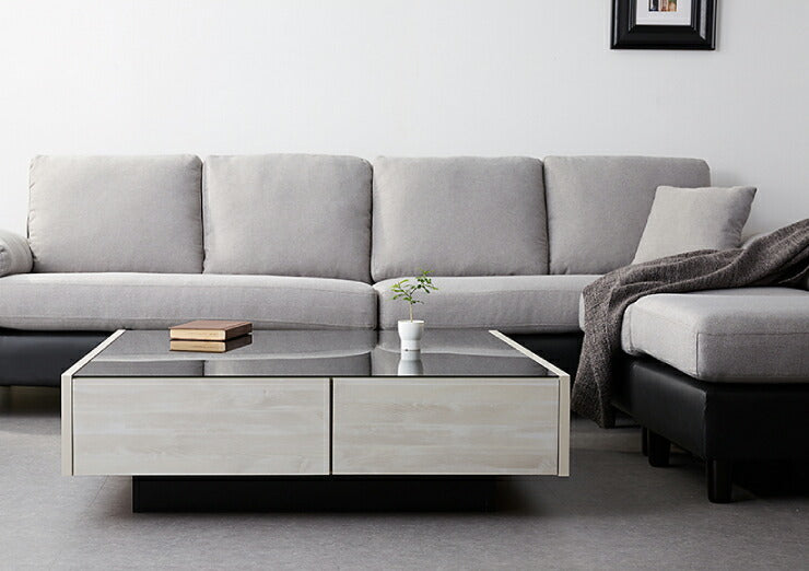 ・木目とブラックガラスのコントラストが美しいセンターテーブルです