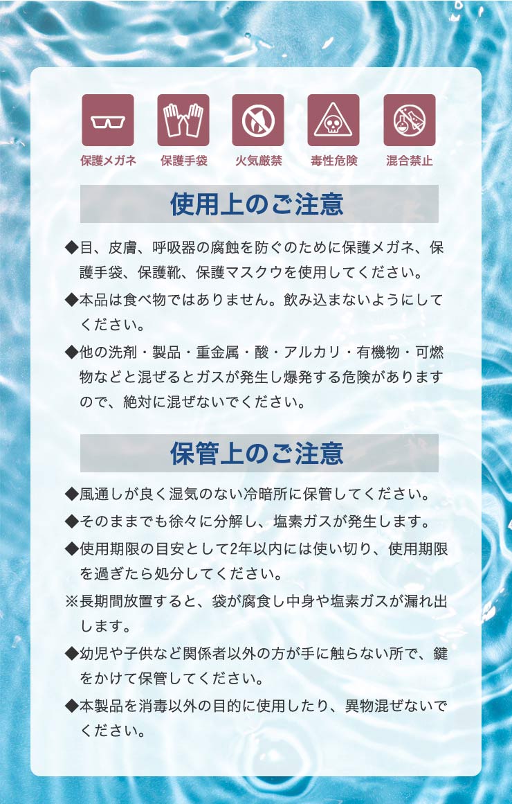 成分:次亜塩素酸カルシウム(有効塩素70%濃度)