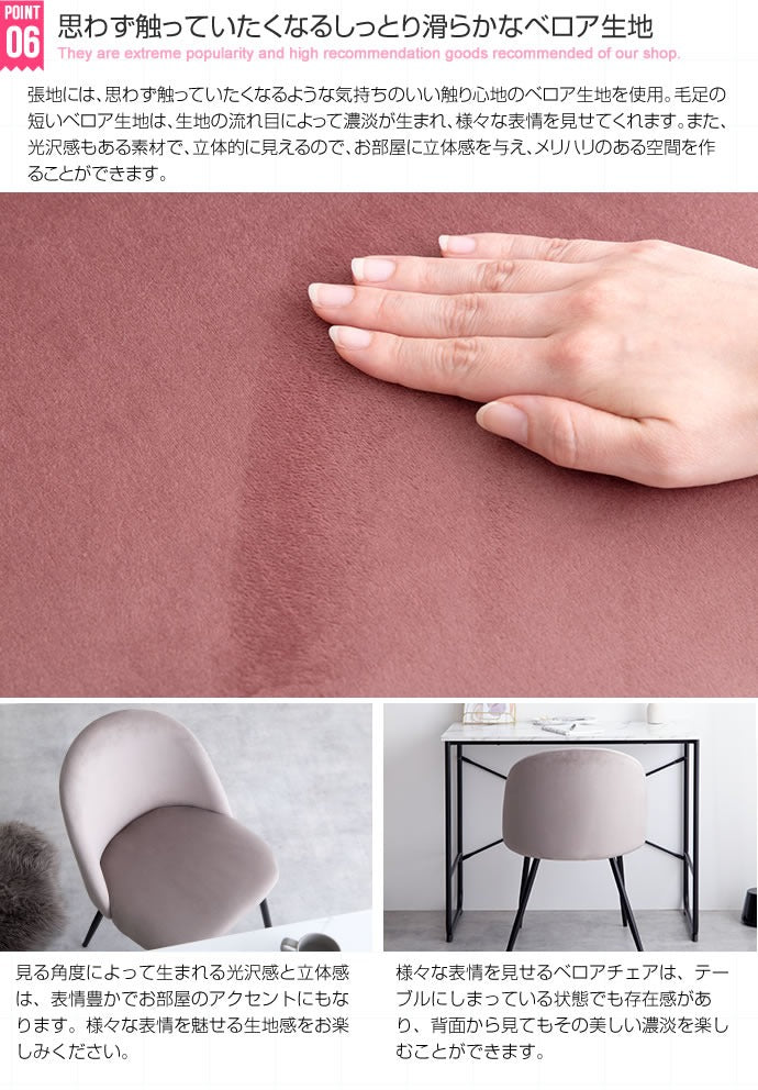 【ベロアダイニングチェア】布材:ベロア、中材:ウレタンフォーム