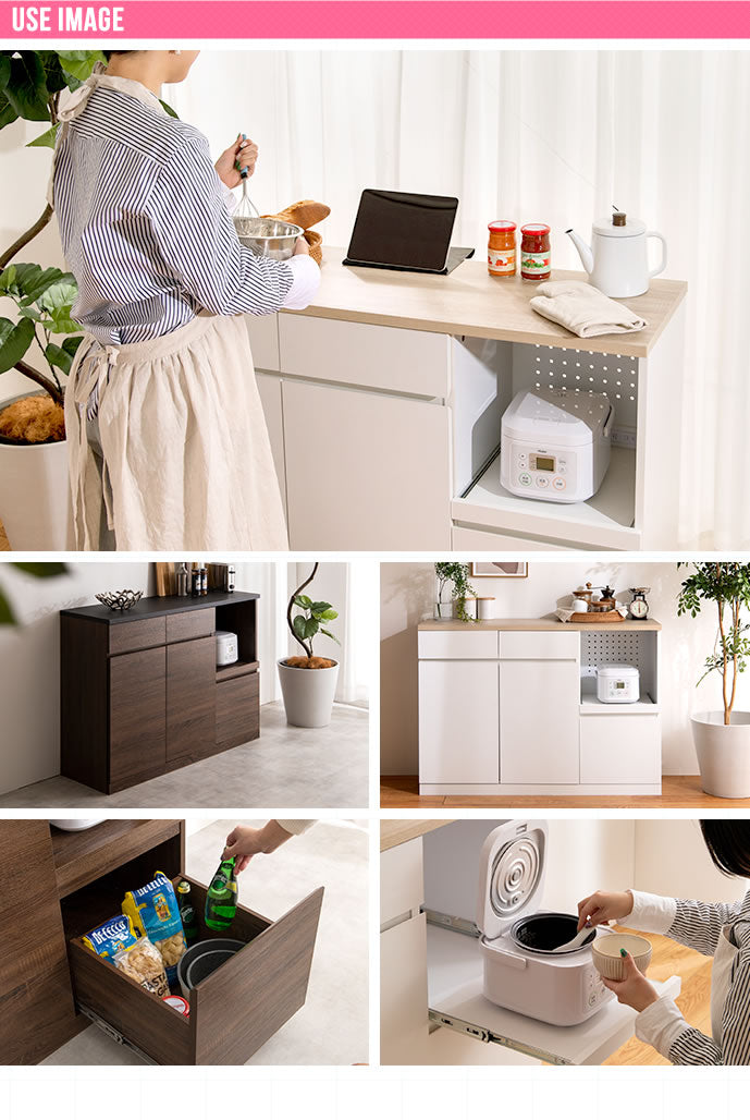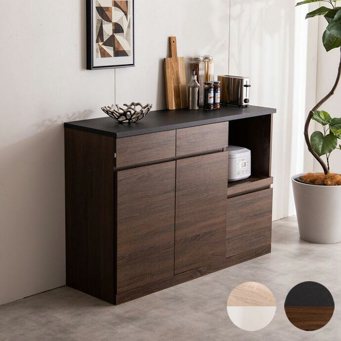 キッチンカウンター 幅120cm キッチン収納 レンジ台 レンジラック 食器棚 木製 フルスライドトレー ノイズレス ツートン シンプル カントリー ヴィンテージ おしゃれ(代引不可)